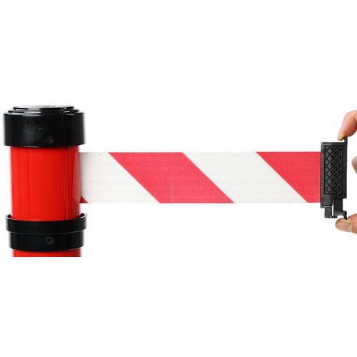 Zeer stevige voet met 4 bevestigingspunten. Mogelijkheid om de palen aan elkaar vast te maken. Voor het afbakenen van bouwterreinen, winkels of eenvoudig afzetten van zones.