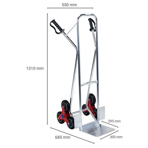 | Productnaam | Aluminium steekwagen voor trappen met 3 wielen in stervorm 150 kg, Materiaal: Aluminium |