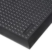 Antivermoeidheidsmat, eenpersoons, van statisch-dissipatief rubber. Ontworpen om elektriciteit van werknemers af te voeren om een onaangename statische schok te voorkomen en apparatuur te beschermen. Het ergonomisch ontwerp van de Skystep™ gebruikt de kracht van de lucht. Het ontwerp van de mat zorgt voor goede grip op de vloer om wegglijden te voorkomen. De luchtkamers zorgen voor een kussen-effect en maken de mat licht van gewicht.