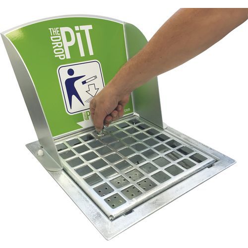 | Productnaam | Asbak The DropPit, Asbak inhoud: 77.5 L, Kleur: Grijs, Materiaal: gegalvaniseerd staal |