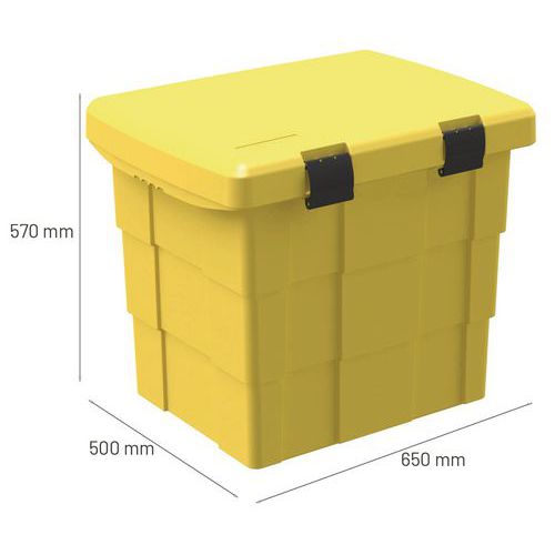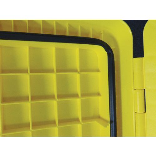 | Productnaam | Bak met vergrendelbaar deksel, Totale inhoud: 108 L, Lengte: 650 mm, Diepte: 500 mm, Hoogte: 570 mm |