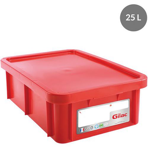 Bak rechthoekig HACCP 600 x 400 met deksel 25 L - GILAC