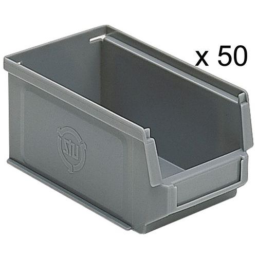 Stapelbakken Silafix verkrijgbaar in verschillende afmetingen en verschillende kleuren. Afhankelijk van de versie met deksel, beschermfolie en papieren etiket.