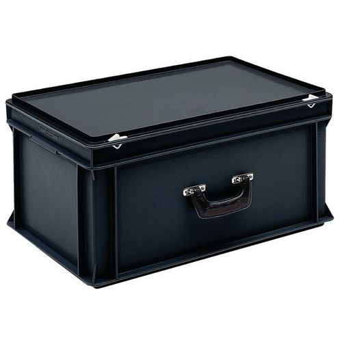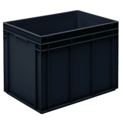 Euronorm-stapelbakken van geleidingsmateriaal met gesloten wanden en bodem of compact en twee Shell handgrepen of dichte handgrepen.