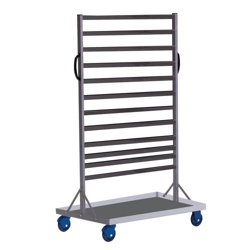 | Productnaam | Bakkenwagen staal met stapelbakken, Max. belasting: 150 kg, Totale hoogte: 1530 mm, Totale breedte: 630 mm |