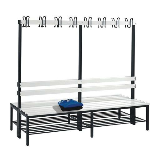 Bank pvc kapstok - 8 tot 16 kledinghaken - Dubbelzijdig - Met rugleuning en schoenenrek