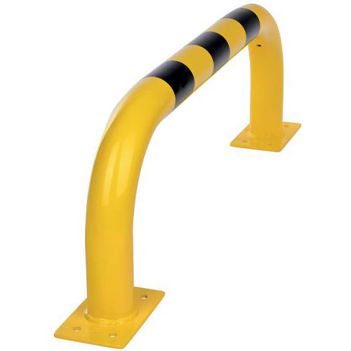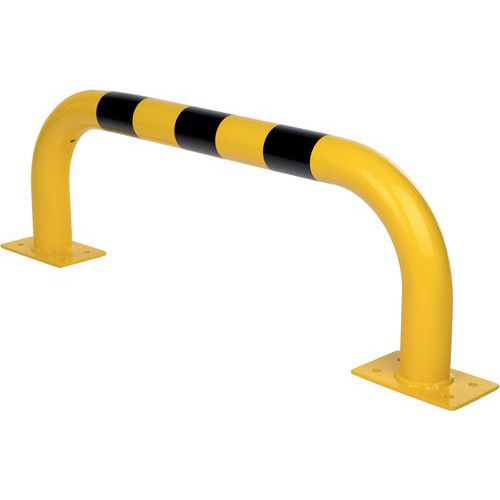 Robuuste stalen beschermbeugel die wordt gebruikt om apparatuur of machines te beschermen tegen klappen van transportmachines. Goede zichtbaarheid dankzij de tweekleurige geel/zwarte kleur. Geschikt voor binnen- en buitengebruik. Bevestigingsmateriaal niet inbegrepen. TÜV-certificaat.