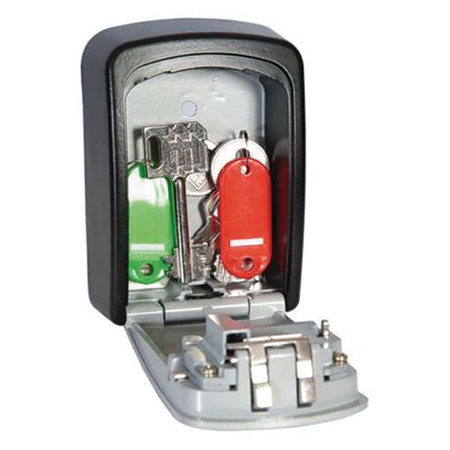 | Productnaam | Beveiligd sleutelkastje, Materiaal: Staal, Totale hoogte: 118 mm, Totale breedte: 83 mm, Kleur: Zwart/grijs |