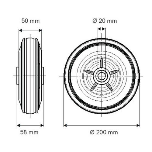 - Bokwiel, vork van geperst staal, verzinkt, wielas met moer, plaatbevestiging.
