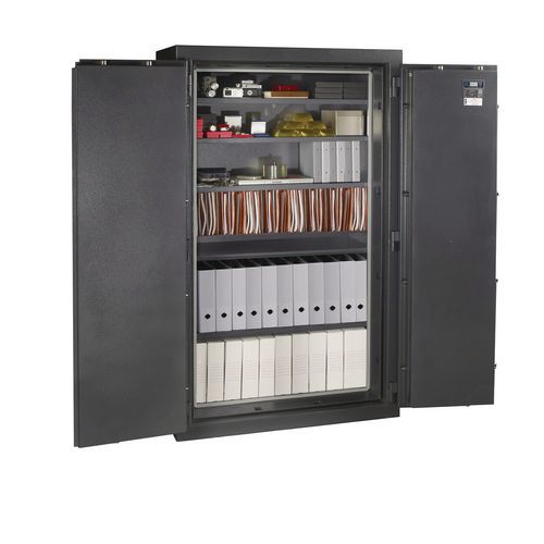 Brandwerende kast 1 uur. Openingshoek van de deuren: maximaal 200°. Vergrendeling met mangaanbepantsering tegen doorboring. Bezorging op afspraak met bedrijfsklaar maken bij de klant en afvoer van verpakkingsmateriaal voor recycling. Begane grond met maximaal 2 treden of verdieping met lift. Maximaal 20 meter rijden. Neem voor alle speciale verzoeken met betrekking tot de levering contact op met onze klantenservice (moeilijk toegankelijke plaatsen, steile hellingen, zachte grond).