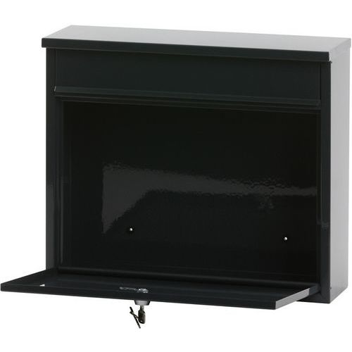 - Metalen muurbrievenbus met klep en afsluitbare toegangsdeur op de voorkant. Opening: 32 x 4 cm.