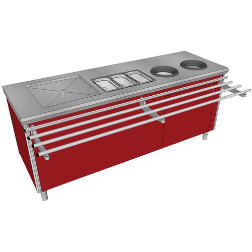 - 3 GN1/3 polycarbonaat bestekbakken 150 mm diep (meegeleverd).
