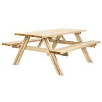 - Klassieke picknicktafel. Ideaal voor 6 personen. Behandeling ter bescherming tegen ontbinding van het hout. Behandeld in een autoclaaf, klasse III. Tafel te plaatsen op een vlakke ondergrond.