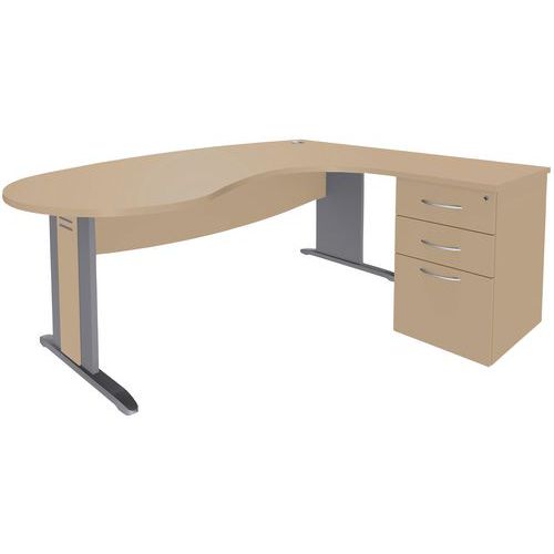 Bureau Quatuor met houten L-poot met retour en ladeblok ter hoogte van het bureau - Manutan Expert