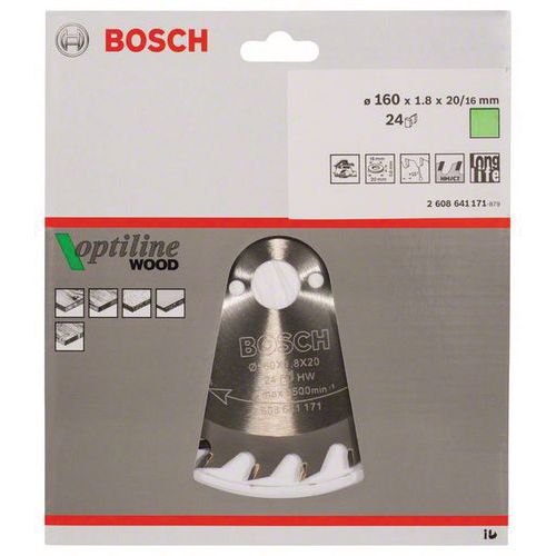 Cirkelzaagblad Optiline Wood, Asgat Ø: 20 mm, Ø: 16 cm, Aantal tanden: 24, Type nr.: 2608641171