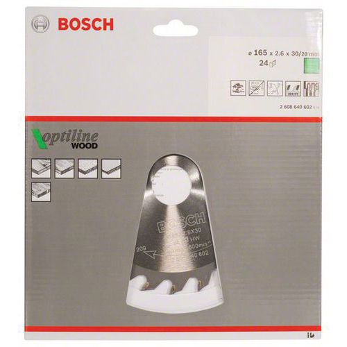 Cirkelzaagblad Optiline Wood, Asgat Ø: 30 mm, Ø: 16.5 cm, Aantal tanden: 24, Type nr.: 2608640602