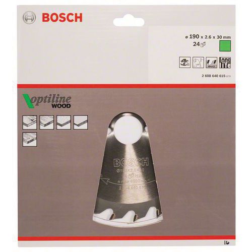 Cirkelzaagblad Optiline Wood, Asgat Ø: 30 mm, Ø: 19 cm, Aantal tanden: 24, Type nr.: 2608640615