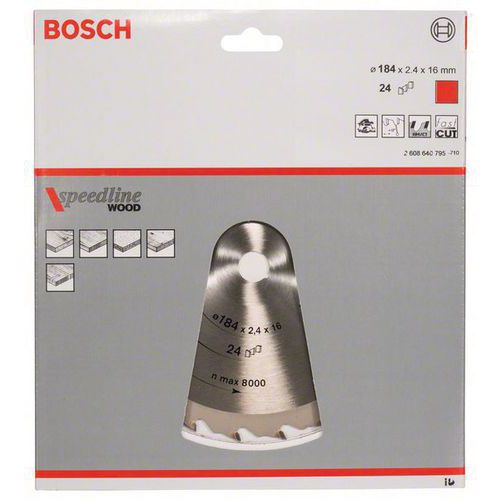 Cirkelzaagblad Speedline Wood, Asgat Ø: 16 mm, Ø: 18.4 cm, Aantal tanden: 24, Snijbreedte: 2.4 mm
