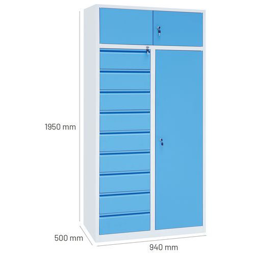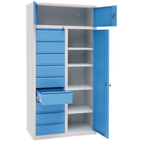 | Productnaam | Combinatiekast Manutan Expert, Max. belasting: 500 kg, Materiaal: Staal, Totale hoogte: 1950 mm |