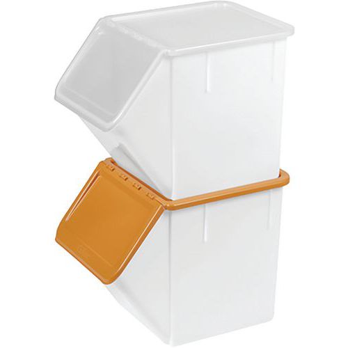 Hoge gebruiksbestendigheid dankzij geïntegreerde scharnieren die overige onderdelen overbodig maken. Met de bovenste bak kan het deksel in de open positie worden vergrendeld om de ingrediëntenbak praktischer in gebruik te maken. Grote markeerzone om de inhoud van de bak aan te geven. Verkrijgbaar in een breed scala aan kleuren en in een transparante versie. Afmetingen van het deksel: - met ingeklapte klep: 450 x 408 x 42 mm. - plat deksel: 690 x 400 x 20 mm. - afmetingen van het pakket bij levering: 445 x 410 x 42 mm