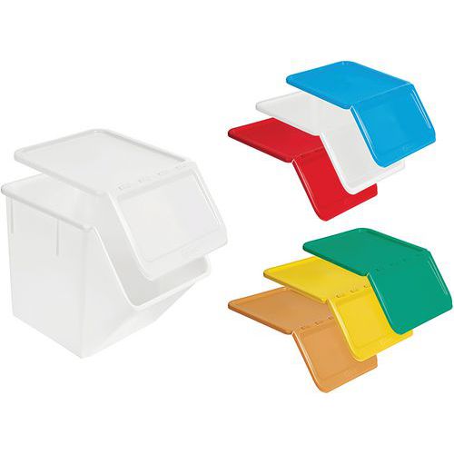 Hoge gebruiksbestendigheid dankzij geïntegreerde scharnieren die overige onderdelen overbodig maken. Met de bovenste bak kan het deksel in de open positie worden vergrendeld om de ingrediëntenbak praktischer in gebruik te maken. Grote markeerzone om de inhoud van de bak aan te geven. Verkrijgbaar in een breed scala aan kleuren en in een transparante versie. Afmetingen van het deksel: - met ingeklapte klep: 450 x 408 x 42 mm. - plat deksel: 690 x 400 x 20 mm. - afmetingen van het pakket bij levering: 445 x 410 x 42 mm
