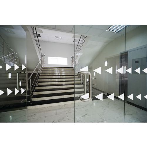 Waarschuwingsplakstrips, klaar voor gebruik. Voldoen aan de geldende normen. De strips kunnen naar behoefte op maat worden gesneden. In 2 hoogtes naar keuze: 52 of 100 mm. Toegankelijk voor mindervaliden