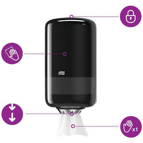 | Productnaam | Dispenser minirol Tork M1, Kleur: Zwart, Hoogte: 32.1 cm, Breedte: 17.4 cm, Diepte: 16.5 cm |