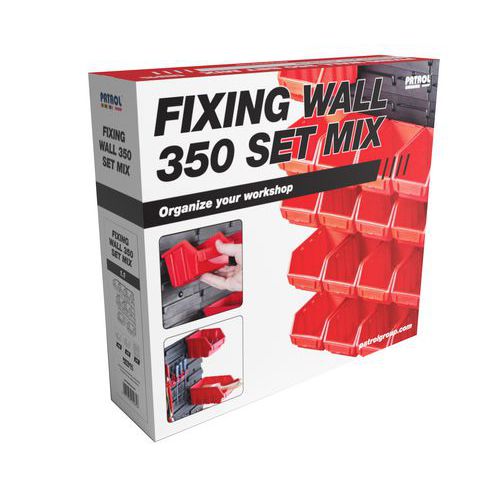 Deze enkelzijdige kunststof wandhouder met de dozen Ergobox 1, Ergobox 2 en Ergogobox 2L is zeer handig voor gebruik in de werkplaats. De wandhouder is voorzien van in totaal negen dozen (3 x Ergogobox 1, 3 x Ergogobox 2 en 3 x Ergobox 2L) die geschikt zijn voor de opslag van klein werkplaatsmateriaal. Er zijn ook kunststof gereedschapshouders en hangende legborden voor gereedschap en kleine voorwerpen beschikbaar. De wandhouder bevat in totaal 54 handgrepen om de dozen, legplanken of houders naar wens kunt plaatsen. Maximaal draagvermogen: 2 kg (Ergobox 1 en Ergogobox 2) en 3 kg (Ergogobox 2 L).