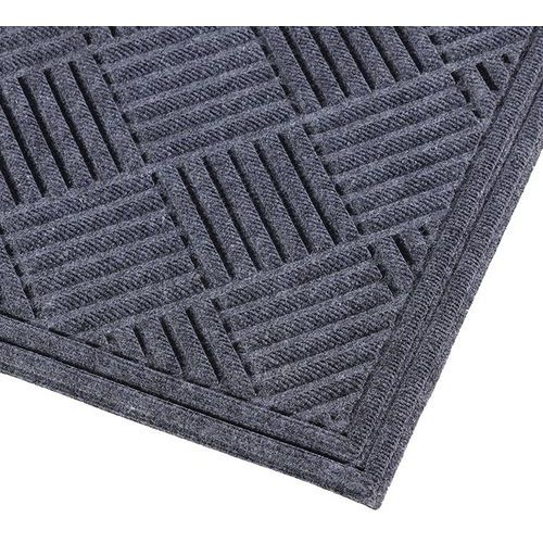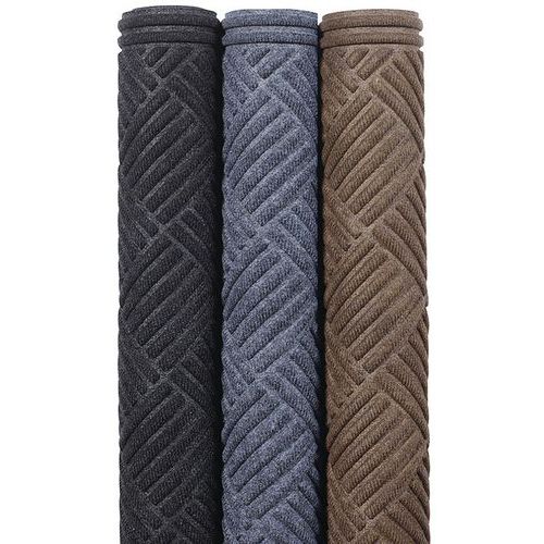 Robuuste entreemat met het gepatenteerd ontwerp ‘Aqua Dam’. De mat heeft 4 gestoffeerde, verhoogde randen, die functioneren als een opvangbak en tot wel 4 liter water per vierkante meter kunnen vasthouden. De bovenlaag van injectiegevormd textiel heeft een gepatenteerd ontwerp met diamantpunten en vrije legrichting. Dit heeft een tweeledig effect: het vuil wordt doeltreffend van de schoenen geschraapt én de schoenen worden geveegd. De stevige rubberen onderzijde zorgt voor een maximale weerstand. De noppen aan de onderzijde voorkomt het verschuiven van de mat op elk type vloer én zorgt voor ventilatie, zodat de vloer onder de mat kan drogen.