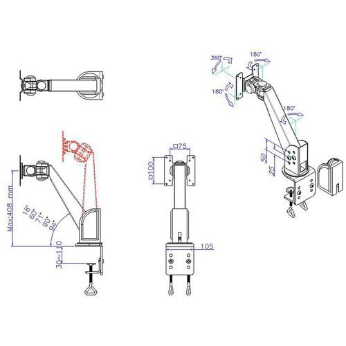 | Productnaam | Ergonomische arm voor lcd-scherm, Max. belasting: 10 kg, Kleur: Zwart, Max. hoogte: 40.8 cm |