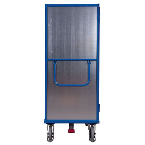 - Robuuste etagewagen met 5 etages met mechanisch gelaste constructie met draaideuren met sleutel.