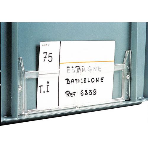 | Productnaam | Etikethouder, Voor bak type: Euronorm-bak, Kleur: Transparant, Type bevestiging: Vast te schroeven |