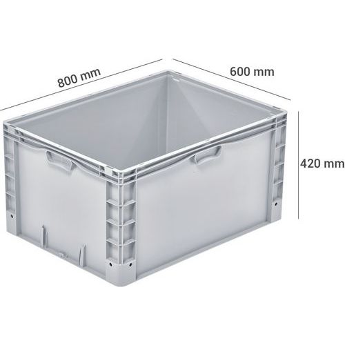 Euronorm-bak dicht, Totale inhoud: 168 L, Stapelbaar: ja, Totale hoogte: 420 mm, Totale breedte: 600 mm