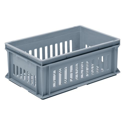 Onvervormbare en zeer schokbestendige Euronormbak. Vormvast, zelfs als de inhoud ongelijk verdeeld is. Zeer stabiel bij stapelen dankzij de verstevigde structuur. Kunststof bak voor eenvoudig vervoer dankzij de schelphandgrepen. Optimaal opbergvolume dankzij de rechte hoeken. Bestand tegen olie, vetten, zouten, zuren en reinigingsmiddelen. Klantgarantie : 3 jaar Max. belasting (kg) : 20