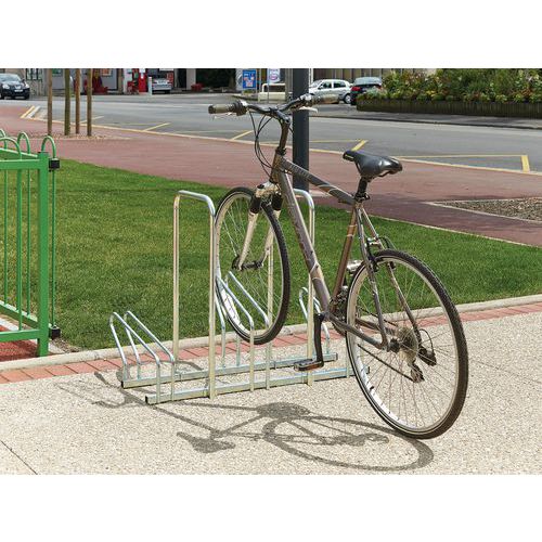 Rek met 2 niveaus, naast elkaar, voor 5 fietsen