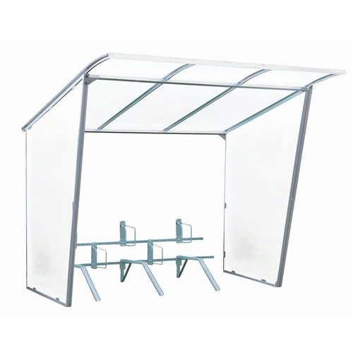 Fietsenstalling met halfdoorzichtig dak van polycarbonaat.