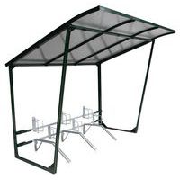 - Fietsenstalling met halfdoorzichtig dak van polycarbonaat.