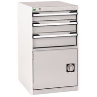 Ergonomische handgrepen voor van boven of van onderen vastpakken, standaard met blokkeersysteem van laden, individuele vergrendeling van de laden als optie verkrijgbaar.