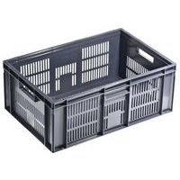 Euronorm 600x400 mm stapelbare bakken van geregenereerd materiaal zijn verkrijgbaar in verschillende hoogtes. De bakken hebben een vaste bodem met opengewerkte wanden of een opengewerkte bodem en opengewerkte wanden. Bovendien hebben alle bakken handgrepen met gaten aan de kleine zijkanten.