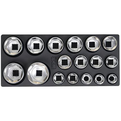 | Productnaam | Gereedschap modulosam plaat 3/4 met 17 delig dop in mm, Type nr.: 78-CH17MM, Aantal stuks: 17 |