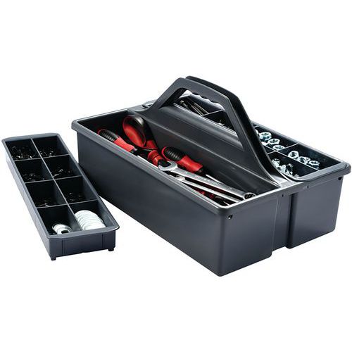 | Productnaam | Gereedschaps-en onderhoudsbak met handvat grijs, Totale hoogte: 205 mm, Totale breedte: 255 mm |