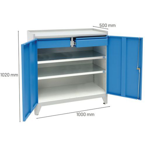 | Productnaam | Gereedschapskast op poten, Max. belasting: 160 kg, Materiaal: Staal, Totale hoogte: 1020 mm, Aantal laden: 2 |