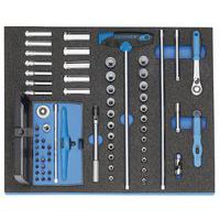 - Module van foam met ratel + doppen 1/4, 46 delen - Facom