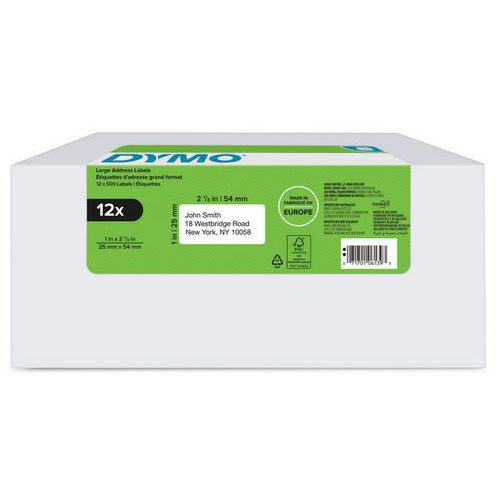 | Productnaam | Groot zelfklevend retouretiket LabelWriter, Breedte: 54 mm, Bord kleur: Wit, Lengte: 25 mm, Materiaal: Papier |