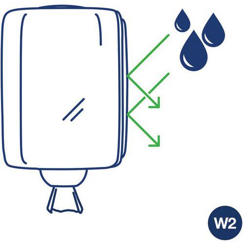 Hygiënisch dankzij het spatwaterdichte deksel dat het papier beschermt.