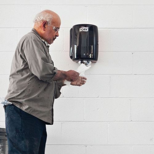 Dispenser Tork voor centerfeedrollen met zeer grote inhoud.