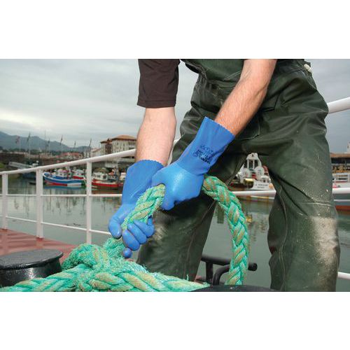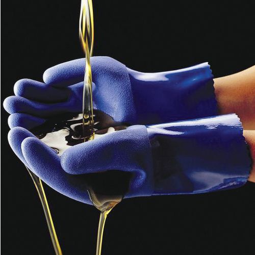 Handschoen Showa 660 chemisch bestendig PVC, Materiaal: Katoen, Kleur: Blauw, Handschoen maat: 11
