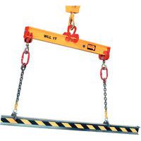 Hijsbalk, voorzien van 2 verstelbare balkklemmen, die het mogelijk maakt om in verschillende situaties uiteenlopende lasten te heffen. De balkklemmen zijn instelbaar in stappen van 100 mm. Bovenste ophanging met centrale ring. Zeer eenvoudig en betrouwbaar instelsysteem. Vervaardigd uit ultrasterk staal.