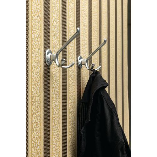 | Productnaam | Hoedhaak met dubbele jashaak , Aantal haken: 3, Kleur: Grijs, Type: Wandmodel, Lengte rail: 9 cm |