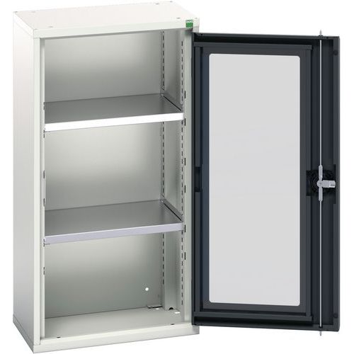 Hoge kast Verso 525x350x1000mm met raamdeur en 2 legborden, Max. belasting: 1000 kg, Materiaal: Staal